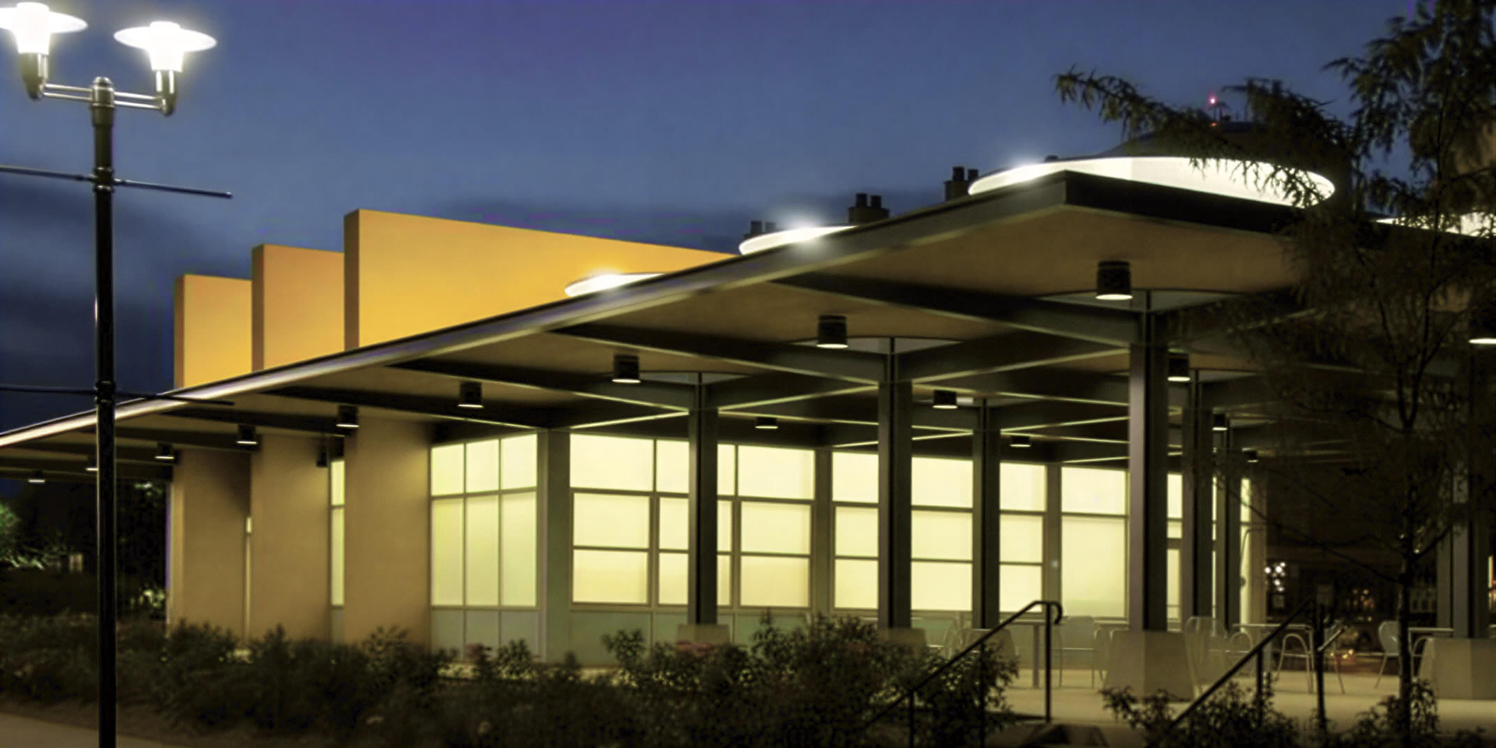 Located within the Arts and Events District of Addison, this 7,570-square-foot pavilion was constructed as a centerpiece for civic gatherings and community events. The low-profile structure features a flat roof, natural pine roof deck, laminated glass, and glazed concrete masonry, allowing the surrounding park environment to remain visually uninterrupted.